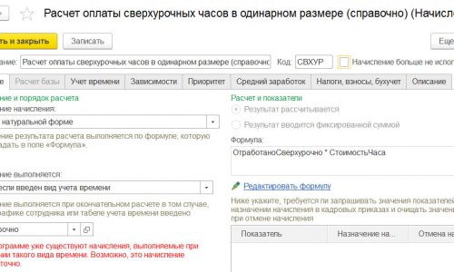 Как включить оплату сверхурочных часов в премию? Использование формулы = РасчетнаяБаза + ОтработаноСверхурочно * ТарифнаяСтавкаЧасовая не работает. Программа не находит показатель «ОтработаноСверхурочно»