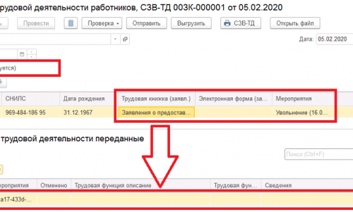 Добрый день! Нет, заявления не указываются в этом регистре, нам просто нужно было сначала исключить ошибку с мероприятиями. Расследование показало, что заявление скорее всего попадает в СЗВ-ТД, т.к. записи с ним нет в регистре сведений «Заявления о ведении трудовых книжек переданные».