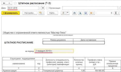 Юлия, добрый день. Не хочет штатка формироваться на любую дату. В настройках дату выбрать можно, но при формировании она сбрасывается и формируется все равно на текущую. Или что-то не так делаем?