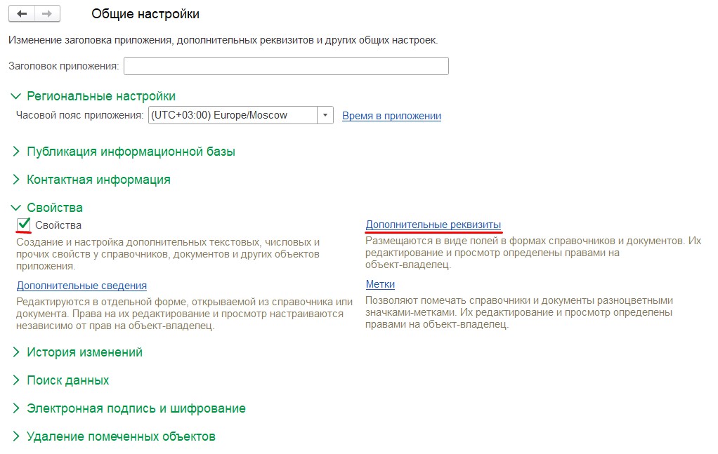 Добрый день! Для того, чтобы хранить данные о номере выданной карте и информацию о ее возврате предлагаю ввести доп. реквизиты для сотрудника. Подключается возможность использования дополнительных реквизитов и сведений флажком Свойства в разделе Администрирование – Общие настройки.