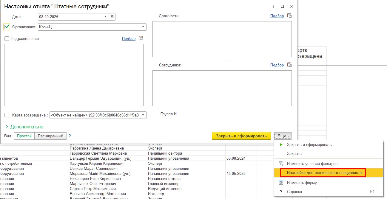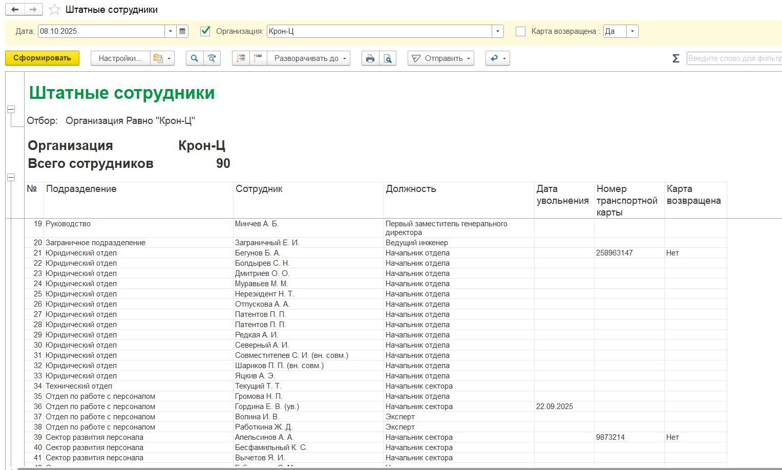 Для удобства проверки можно воспользоваться донастроенным отчетом Штатные сотрудники, Настройки для скачивания прилагаю Штатные сотрудники с номером транспортной карты. Отчет загружаем в кадровый отчет Штатные сотрудники через настройки для технического специалиста. Чтобы все корректно у Вас загрузилось, доп реквизиты должны быть оформлены точно также как на скриншотах выше.