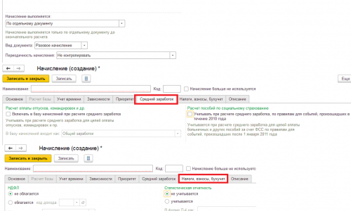 В данном случае настройка по среднему заработку зависит от варианта оформления операции.