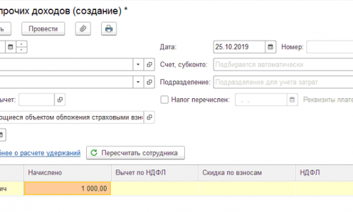 Вам нужно будет настроить в документе «Вид дохода», в котором указать порядок обложения НДФЛ и взносами.
