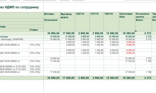 Получается, что сотрудник получит вычеты за 2 месяца в марте. Но при начислении зарплаты это выровняется.