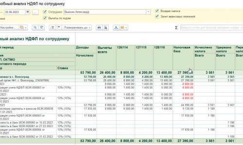 Исходя из подробного анализ ндфл у сотрудника право на вычет предоставлено за три месяца. Сумма вычетов верная, здесь пока все в порядке.