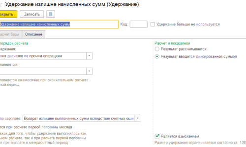 В настройках удержания можно установим флажок Удерживается при расчете первой половины месяца. В документе Начисление за первую половину месяца будет сумма удержания полностью указана, исправим руками. Ведомость на выплату уже автоматически будет заполняться