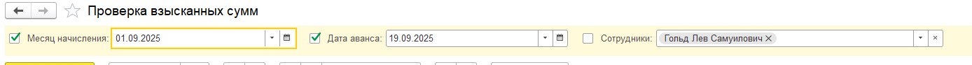 Нет проверочного отчета, где можно было бы собрать всю информацию об удержанной сумме по сотруднику. Установили «Универсальный отчет по исполнительным листам с разбивкой по датам удержания», но и он не отражает информацию по удержанной сумме аванса. Дата аванса в параметрах отчета указана верно. Это ошибка релиза? Или не хватает каких-то настроек?