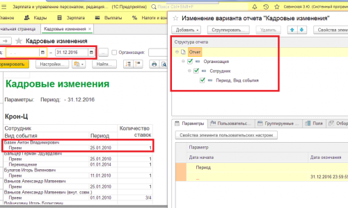 Хотелось бы для этого настроить отчет по регистру следующим образом : список по сотруднику и его последнее кадровое событие на 31.12.16