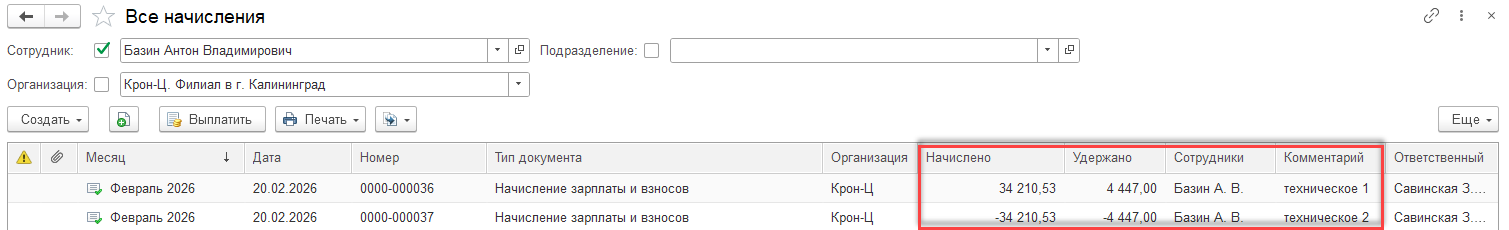 Добрый день, Марина! Спасибо за ответ. Только я не могу задним числом в феврале что-то править… Организация крупная, 26 обособленных подразделений, 1 квартал закрыли для исправлений… Возможно ли это сделать апрелем? Исправить начисления за первую половину февраля — нет такой «клавиши». Сторнировать весь документ, а это 150 человек…Много квартальной отчетности уже сдано… А можно сторнировать документ только не весь, а с одной фамилией?