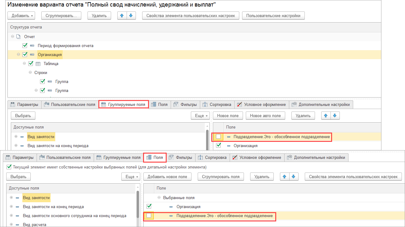 Данный отчет должен отдельно выводить для нее сотрудников на гпх