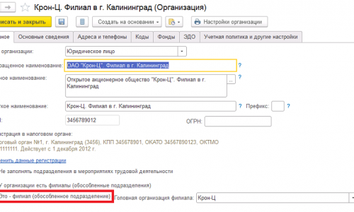 Здравствуйте! Скорее всего в справочнике Организации установлен признак, что это филиал. Если этот признак видно визуально, это упрощает задачу, если нет, то его можно снять с помощью Групповой обработки справочников и документов.