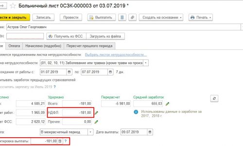 вот так «считается» ндфл в больничном. Смоделируйте если можно ситуацию в релизе.