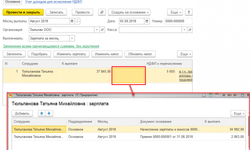 Здравствуйте! Нужна форма расшифровки, которая открывается по двойному щелчку рядом с суммой выплаты. (В приложенном файле пример). Из ведомости, в которую подтягивается возвращенный НДФЛ.