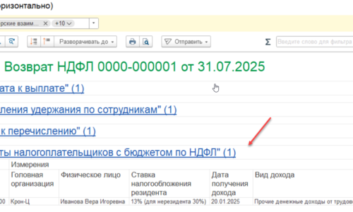 Расчеты налогоплательщиков с бюджетом по НДФЛ — так мы отразим факт возврата налога.