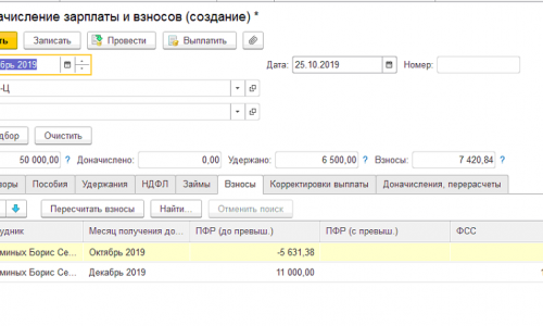 После этого рассчитываем взносы за октябрь. Они рассчитались в полном объеме.