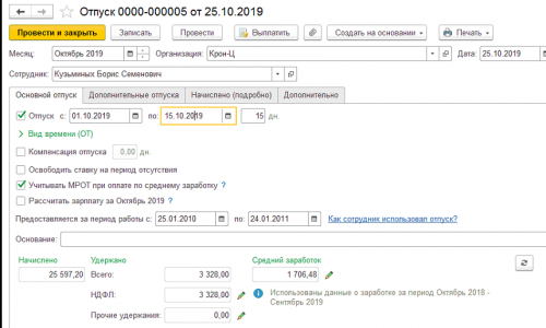 Добрый день! Напишу как я поняла вопрос с примером. В октябре начислили отпуск.