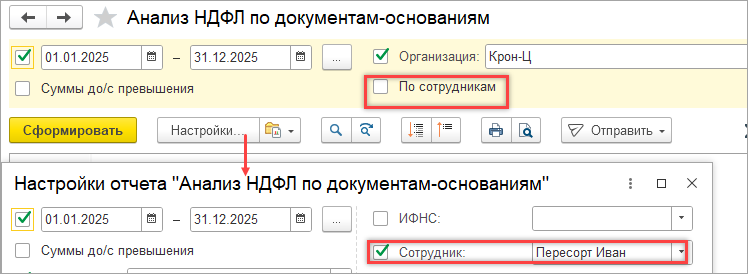 — отчет Анализ НДФЛ с проверкой исчисленного налога, настройки отчета можно скачать здесь: Настройки отчетов 1С:ЗУП 3.1 для анализа НДФЛ