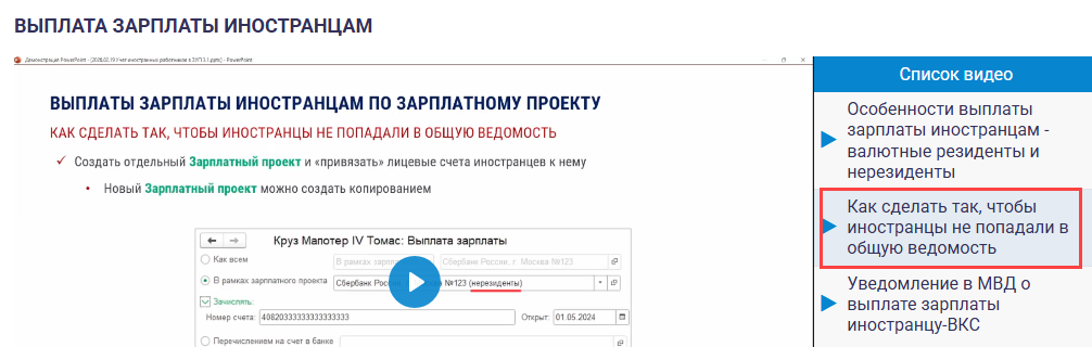 Можно технически создать в программе два зарплатных проекта, как это сделать посмотрите пожалуйста Светлана Змиевская разбирает на семинаре (смотрите видео — Выплата зарплаты иностранцам): Учет иностранных работников в ЗУП 3.1 от А до Я