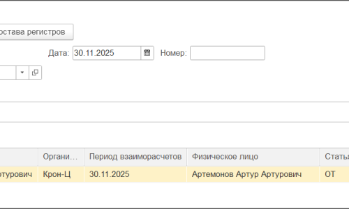 С видом Приход по сотруднице с указанием 30,11,2025 ОТ Администрация