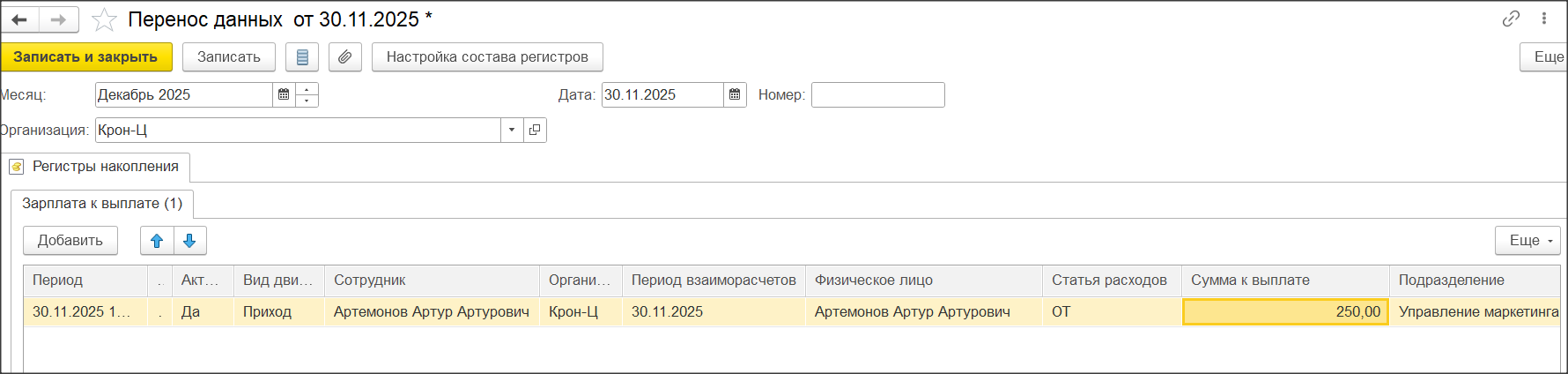 10. Давайте с вами создадим документ Перенос данных по регистру Зарплата к выплате