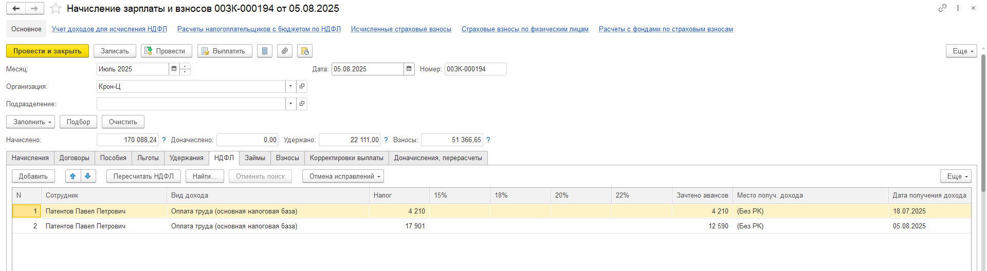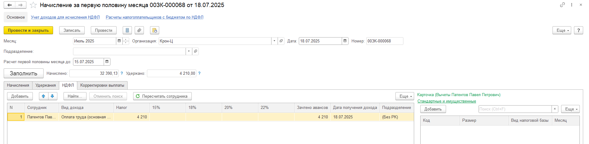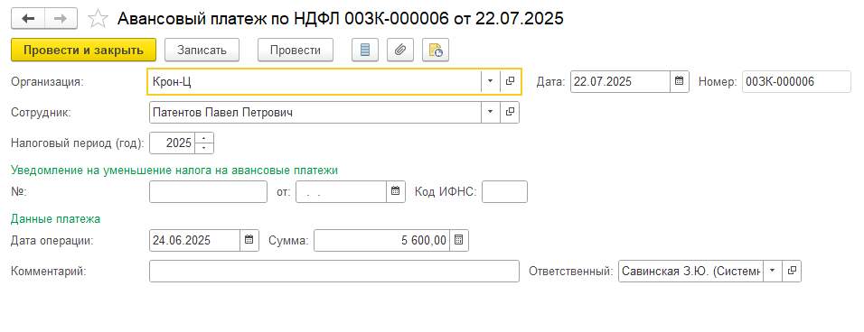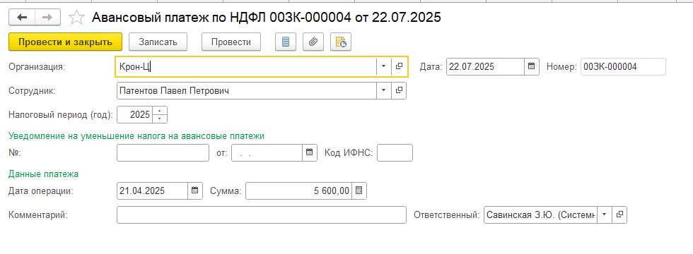 Сотрудник на патенте работал с 2024г, уволился 31 марта 2025 и повторно устроился в июле. До марта ежемесячно делали зачет НДФЛ. Каким образом делать зачет при новом трудоустройстве (с июля)? Оплаченные суммы в период апрель — июнь можно учесть в зарплате с июля и далее?