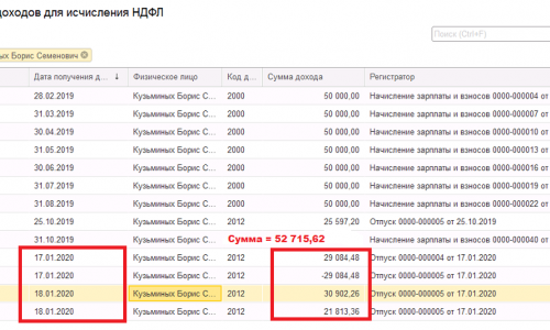 Здравствуйте! Проверьте в регистре накопления «Учет доходов для исчисления НДФЛ», не задвоены ли там суммы?
