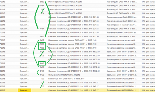 Дмитрий, по Анализу НДФЛ по сравнению с первым скрином только добавились 730 руб исчисленного НДФЛ в августе, так как ему начислили и выплатили больничный лист (скрин приложила). Похоже об этой же ошибке говорит и Елена Грянина в видео «Программная ошибка» по ссылке [13.07.2018 запись] Отчетность по НДФЛ за 1 полугодие 2018