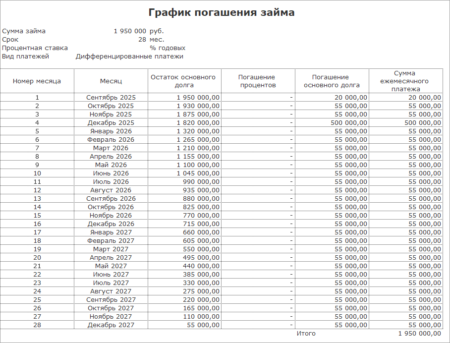 5. Формируем из последнего документа Изменение договора займа график платежей, который и хотели получить: