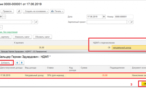 Пробывали ввесли документ Операция учета НДФЛ — сторно запись материальной выгоды за апрель. И после этого ввели документ Пересчет НДФЛ — документ заполнился автоматически отрицательным НДФЛ. Но потом заполняем ведомость НДФЛ в следующих периодах не уменьшается, а увеличивается сумма выплаты.