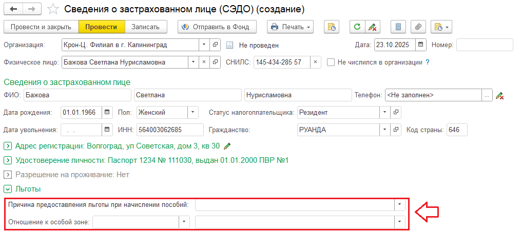 Здравствуйте, а если требует актуализировать льготы. Какие действия необходимо сделать в 1С:ЗУП. Человек был на больничном до 29.09.2025 и с 30.09.2025 получил справку об инвалидности. И по какой причине может ФСС запросить актуализацию данных