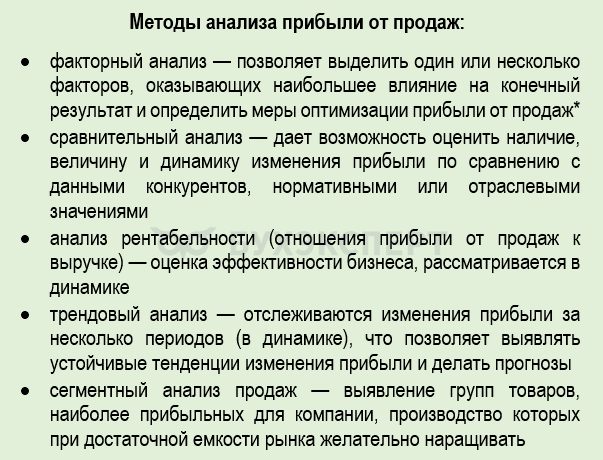 При анализе прибыли от продаж могут использоваться самые разнообразные методы, например: