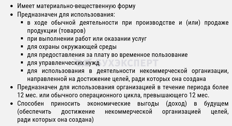 Признаки основного средства