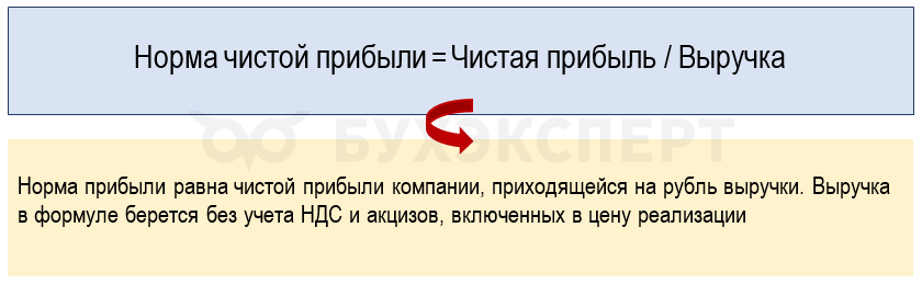 • В финансовом анализе норма чистой прибыли рассчитывается делением суммы чистой прибыли на выручку без НДС и акцизов и показывает, сколько чистой прибыли компании приходится на рубль выручки