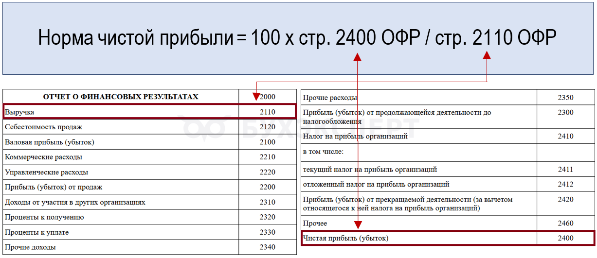 Норма чистой прибыли — доля чистой прибыли в сумме выручки за отчетный период. Она отражает уровень доходности деятельности компании, характеризует деловую активность. Чем выше норма, тем более доходный и эффективный бизнес.