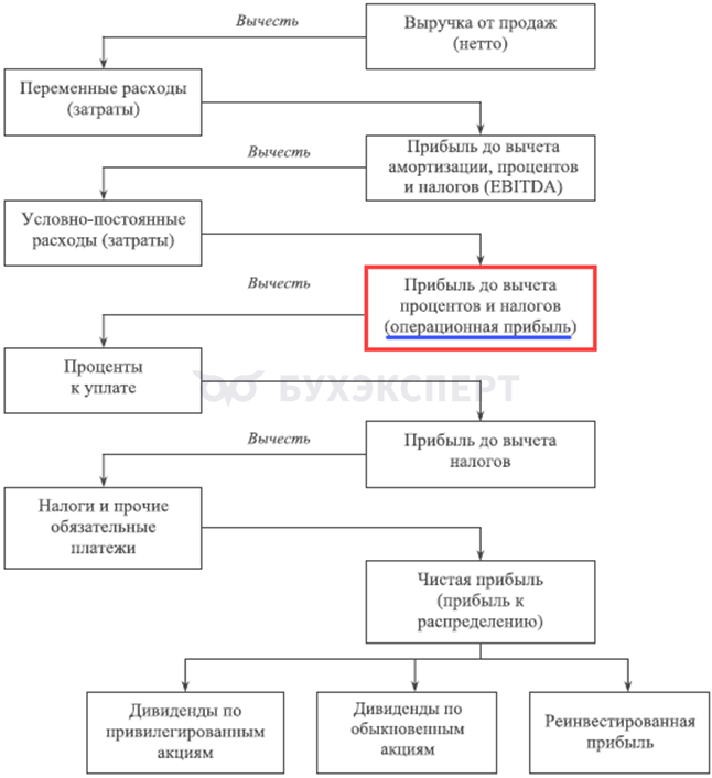 В некоторых случаях операционной называют прибыль до налогообложения (стр. 2300 ОФР). Этот подход широко используется в финансовом анализе (см. на схеме выше), но не забываем к расчету добавить «проценты к уплате».