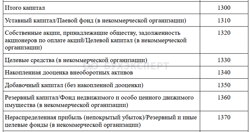 Каждому элементу собственного капитала присвоен код для отражения в балансе.