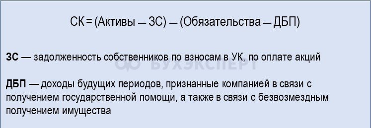 Если рассматривать собственный капитал как чистые активы компании, расчетная формула будет выглядеть так.