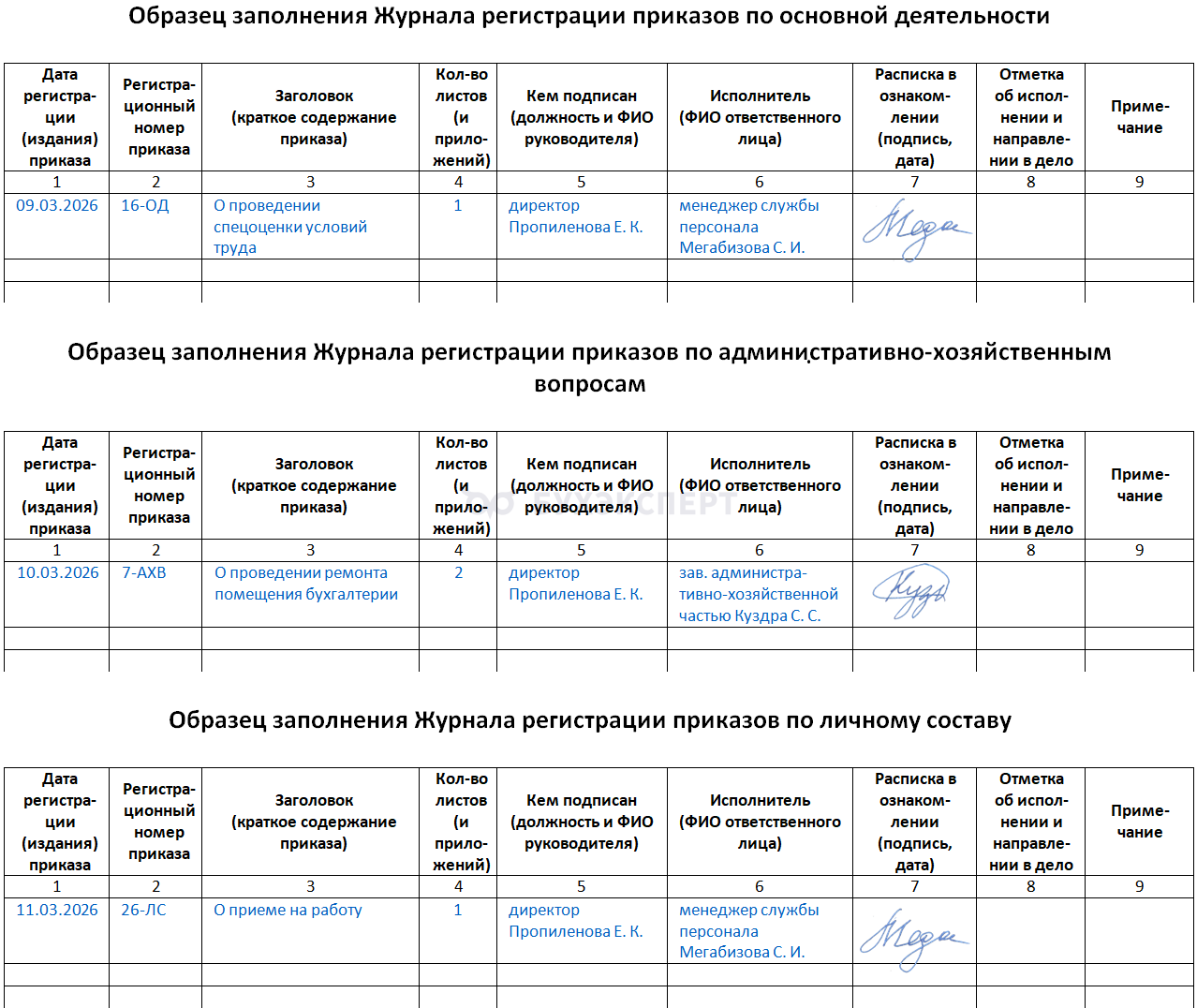 Учет приказов различных видов (по основной деятельности, кадрам и АХВ) целесообразно вести раздельно. Это не только упорядочивает нумерацию внутри каждой категории, но и соответствует срокам архивного хранения, которые для разных категорий приказов будут отличаться: