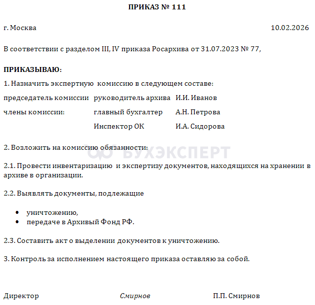 - правила организации хранения, утв. приказом Росархива от 31.07.2023 N 77, определяют порядок хранения и уничтожения архивных документов