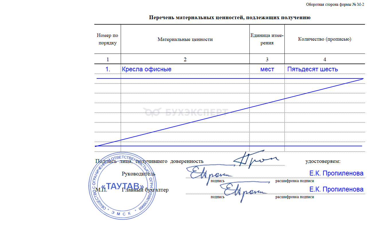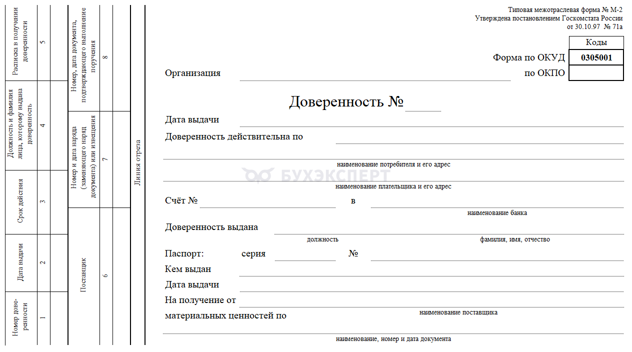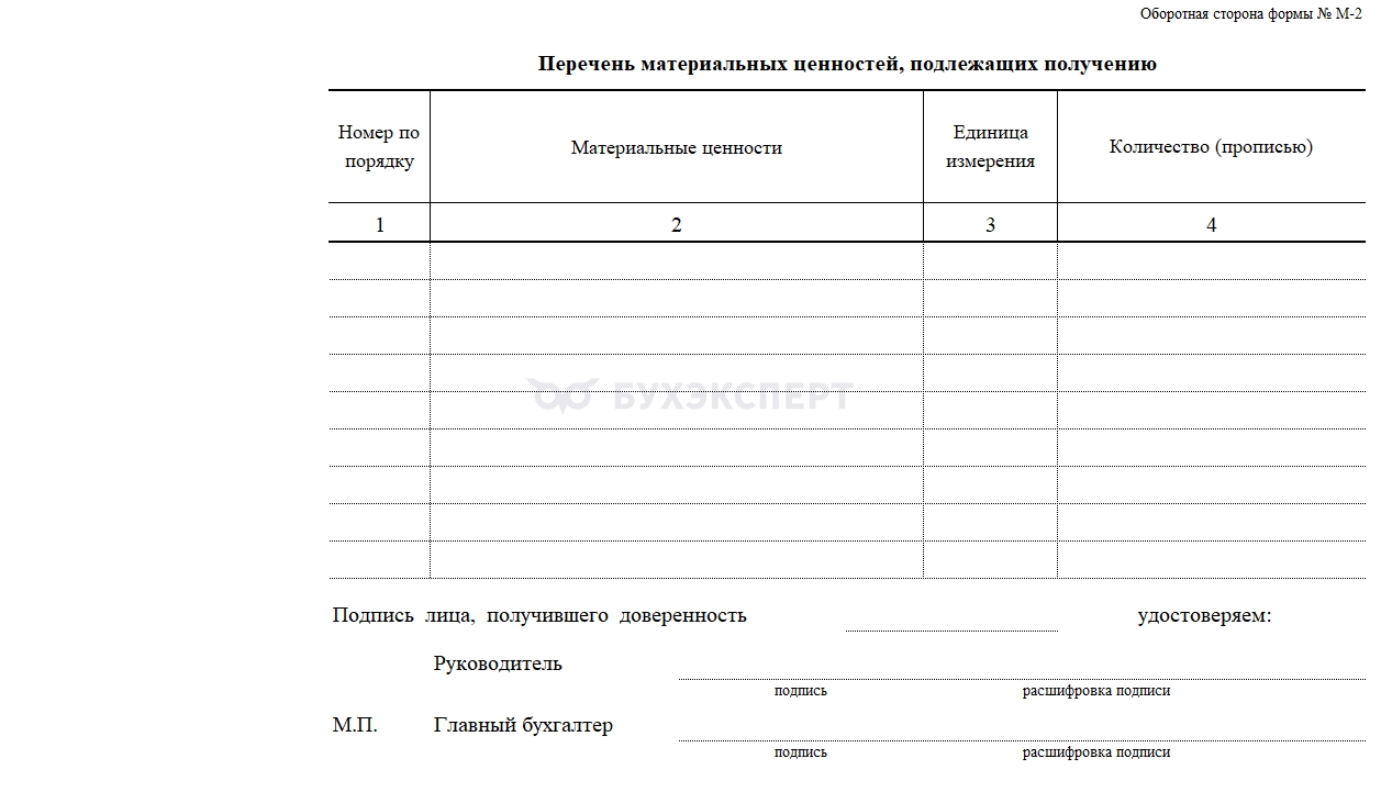 - Доверенность на получение груза – образец типовой формы № М-2