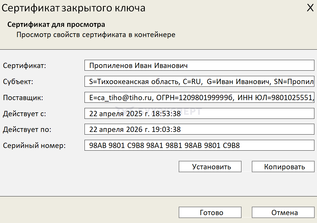 Офлайн-способ заключается в использовании специальной программы-криптопровайдера, установленной на локальный компьютер владельца подписи. При подключении токена с ЭЦП (или просмотре сертификата на диске ПК) такая программа покажет срок действия хранящегося на нем сертификата.