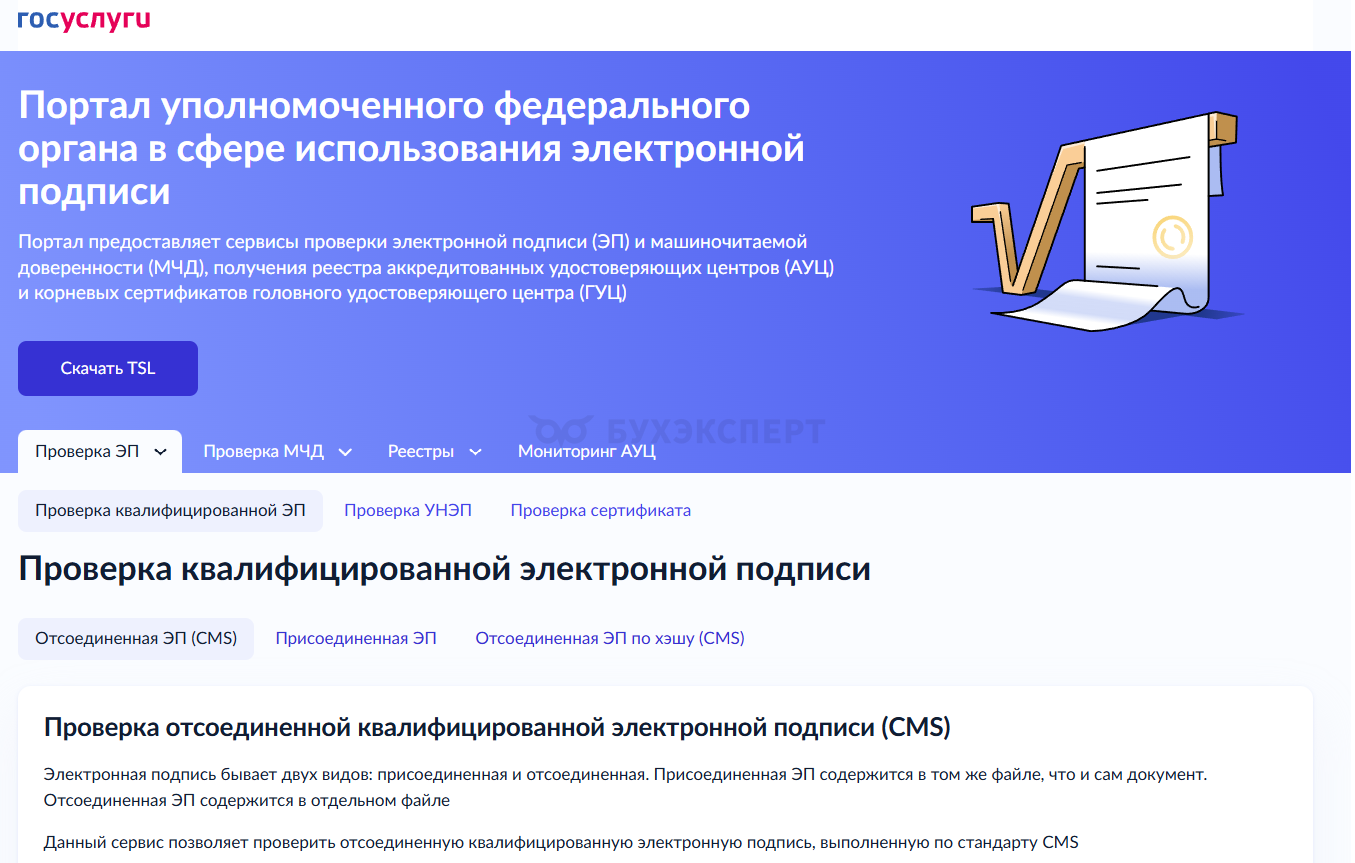 1 Шаг. Проверка срока текущего сертификата (см. выше) — УЦ обычно позволяет проверить статус ЭЦП на своем сайте, но есть и иные возможности (например, на портале «Госуслуги»).