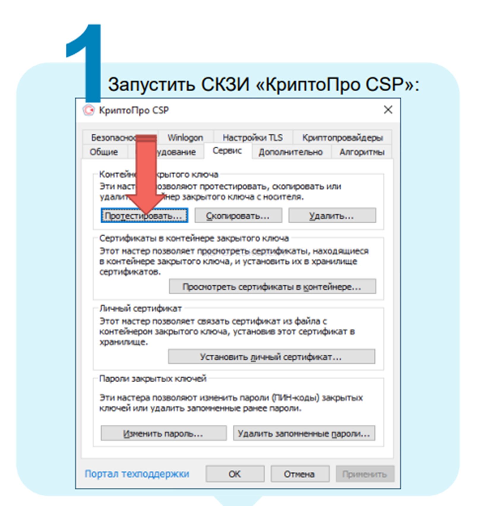 - Запустить криптопровайдер