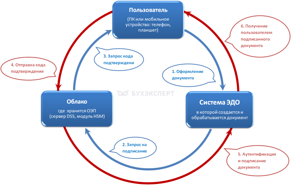 Как видно из схемы, оформление документа с применением облачной электронной подписи проходит поэтапно: