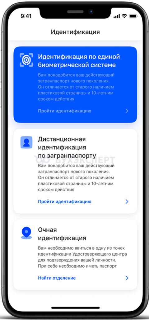 - пройти идентификацию: через биометрию или путем предоставления удостоверяющих документов (паспорт, СНИЛС, ИНН) при личном обращении в АУЦ