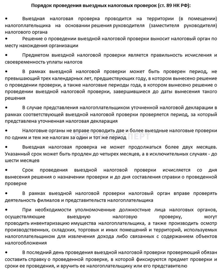 - Кратко о выездной налоговой проверке
