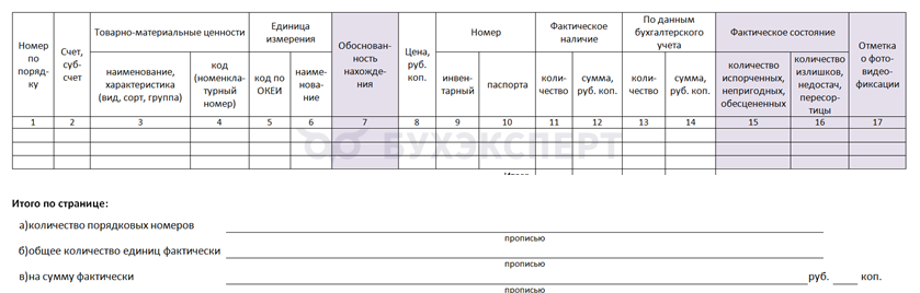 - сведения о состоянии активов: вносятся отметки о порче ТМЦ, их неликвидности или частичной потере потребительских свойств