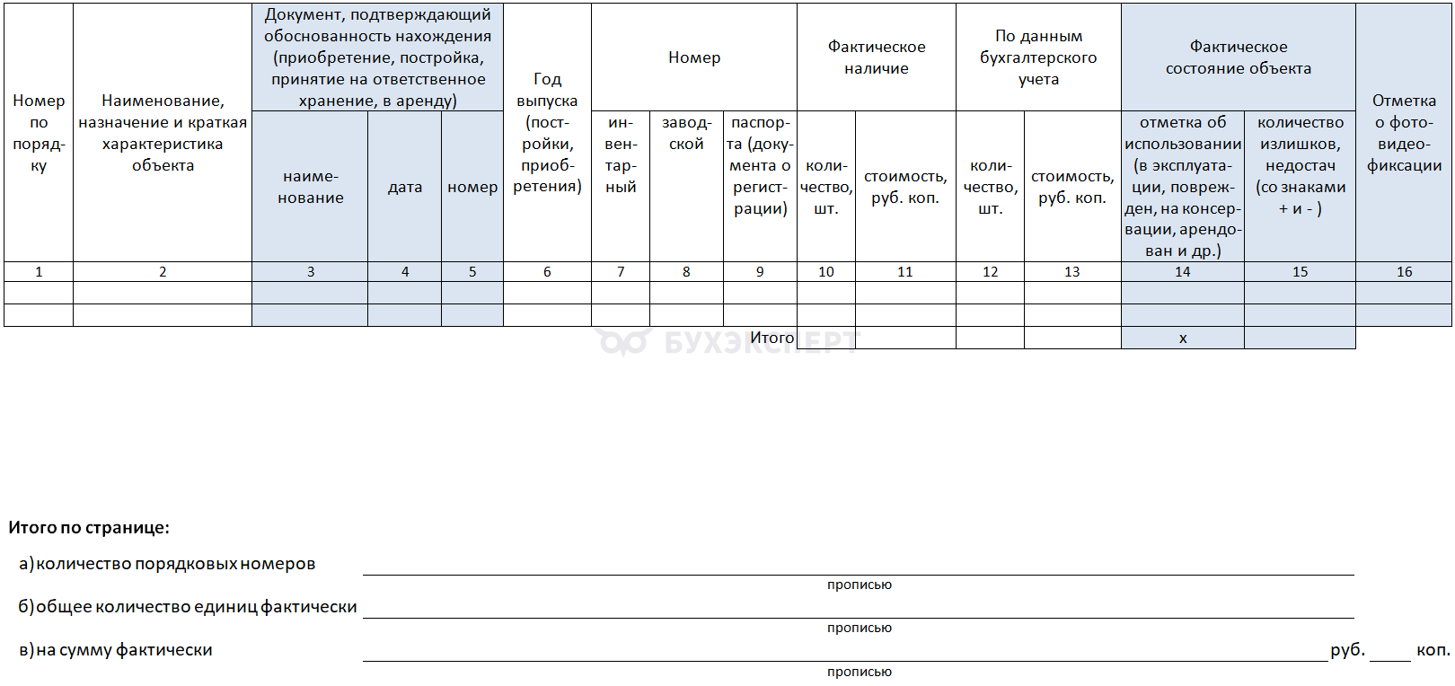 При использовании формы № ИНВ-1, ее следует дополнить реквизитами для фиксации всех этапов контроля и обязательных сведений об объектах.