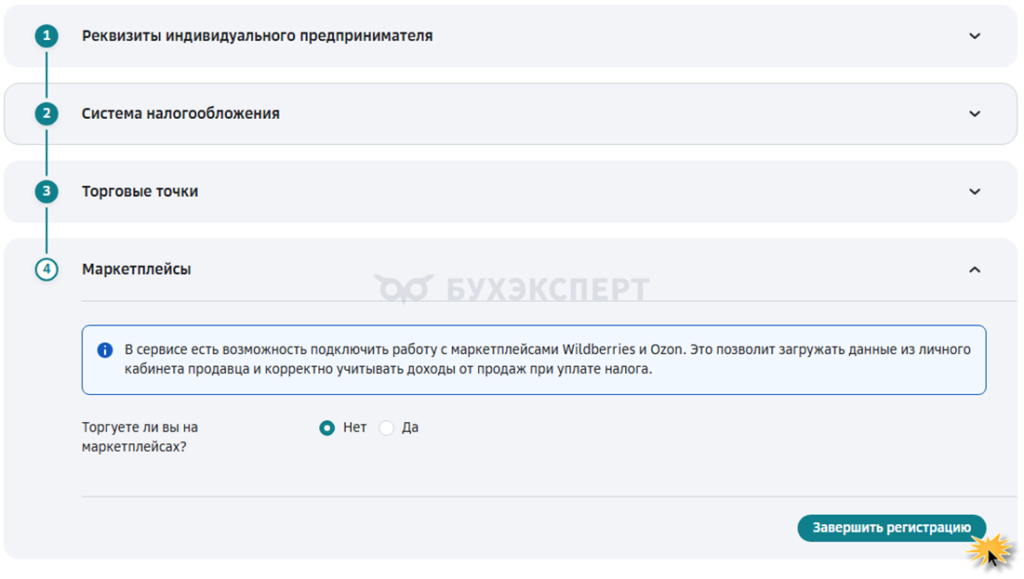 Шаг 6. Ответьте на вопрос «Торгуете ли вы на маркетплейсах?».