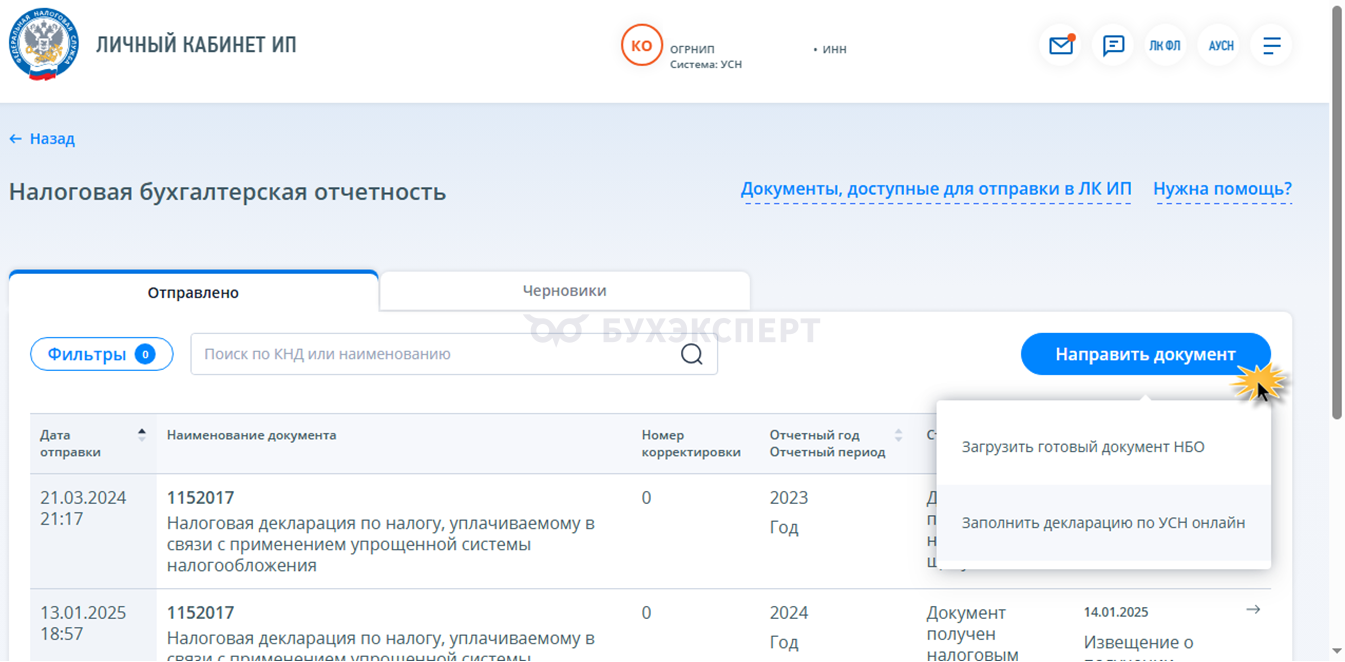 От налоговой отчетности большинство ИП не освобождены, но и этот процесс можно максимально упростить и облегчить. К примеру, ИП могут сформировать и сдать бесплатно декларацию по УСН без использования каких-либо сторонних программ и сервисов в личном кабинете налогоплательщика.